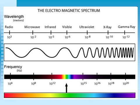 So here's where it gets interesting the higher the frequency of light the more energy it contains so gamma rays travel at 10/12 Hz and can kill you in a split second however radio waves travel at 10/3hz and can do no harm to you at all.