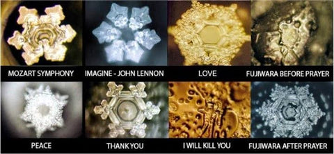 Japanese scientist Masuru Emoto conducted an amazing series of experiments where he exposed water to the energy of music, words and thoughts and then froze it to see how the molecular structure was affected, the results were astounding - beautiful symmetrical crystals in response to the word Love and Thankyou, hideous deformed crystals in response to the word hate. We are 70% water how does the energy we get from those around us, from television, movies, harsh words and kind gestures affect us?